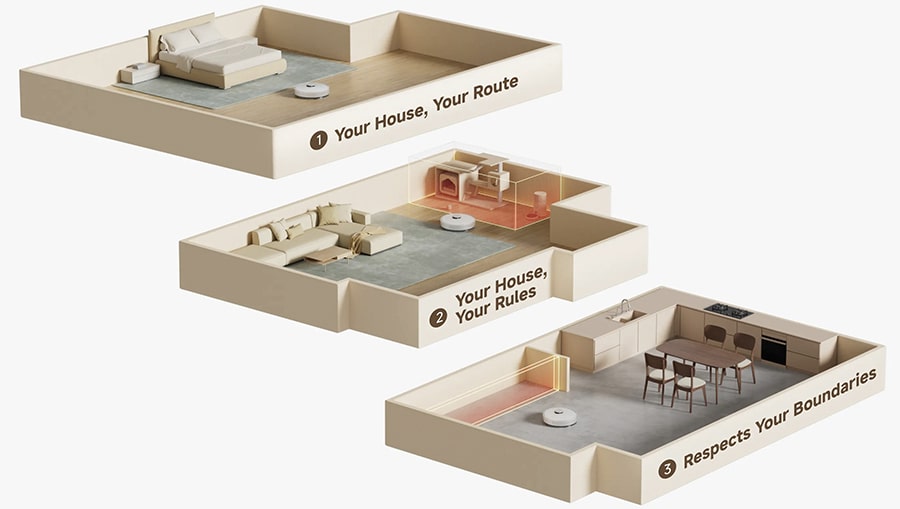 С приложением Dreamehome вы сможете не только настроить зоны уборки, но и определить приоритеты задач, а также составить удобное расписание для робота-пылесоса. Вы можете обозначить запретные зоны, чтобы техника не заезжала туда, и