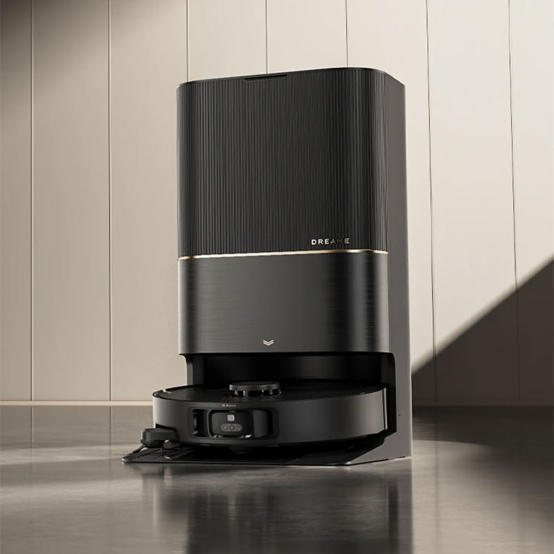 Наслаждайтесь полностью автоматизированным уходом и уборкой в течение 2,5 месяца. После завершения сеанса робот Dreame возвращается на станцию, чтобы промыть насадки горячей водой и тщательно их просушить. Если выбрать влажную уборку с моющим раствором, он автоматически дозируется из соответствующего отсека в станции.