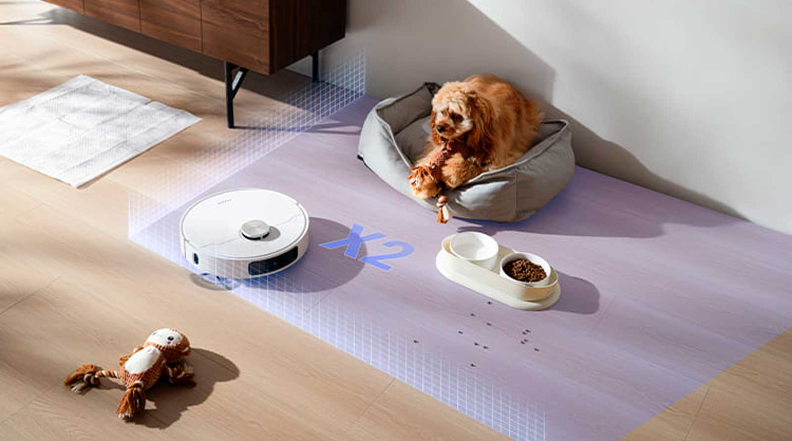 Когда вы активируете режим ухода за домашними животными, L10s Ultra Gen 2 адаптирует свою уборку к потребностям вашего питомца. Добавляя мебель вашего питомца в приложение Dreamehome, пылесос интеллектуально определяет зоны обитания