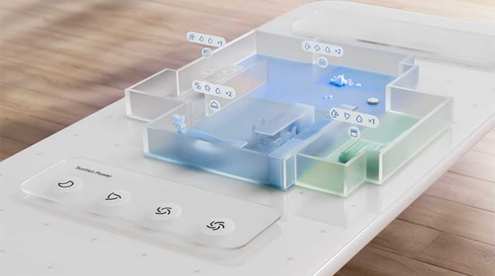 домашних животных, очищает их дважды и увеличивает частоту сбора пыли во время уборки, чтобы эффективно собирать шерсть домашних животных. Он также регулирует объем воды для быстрого высыхания во время мытья полов, обеспечивая