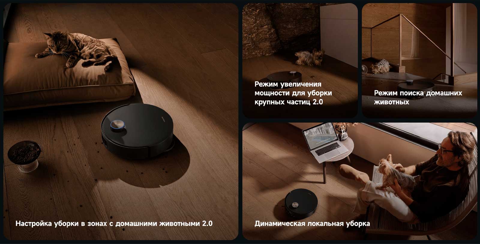 Избавьте себя от хлопот с помощью настройки уборки в зонах с домашними животными 2.0, функции динамической локальной уборки и режима увеличения мощности для уборки крупных частиц, которые помогут поддерживать безупречную чистоту в
