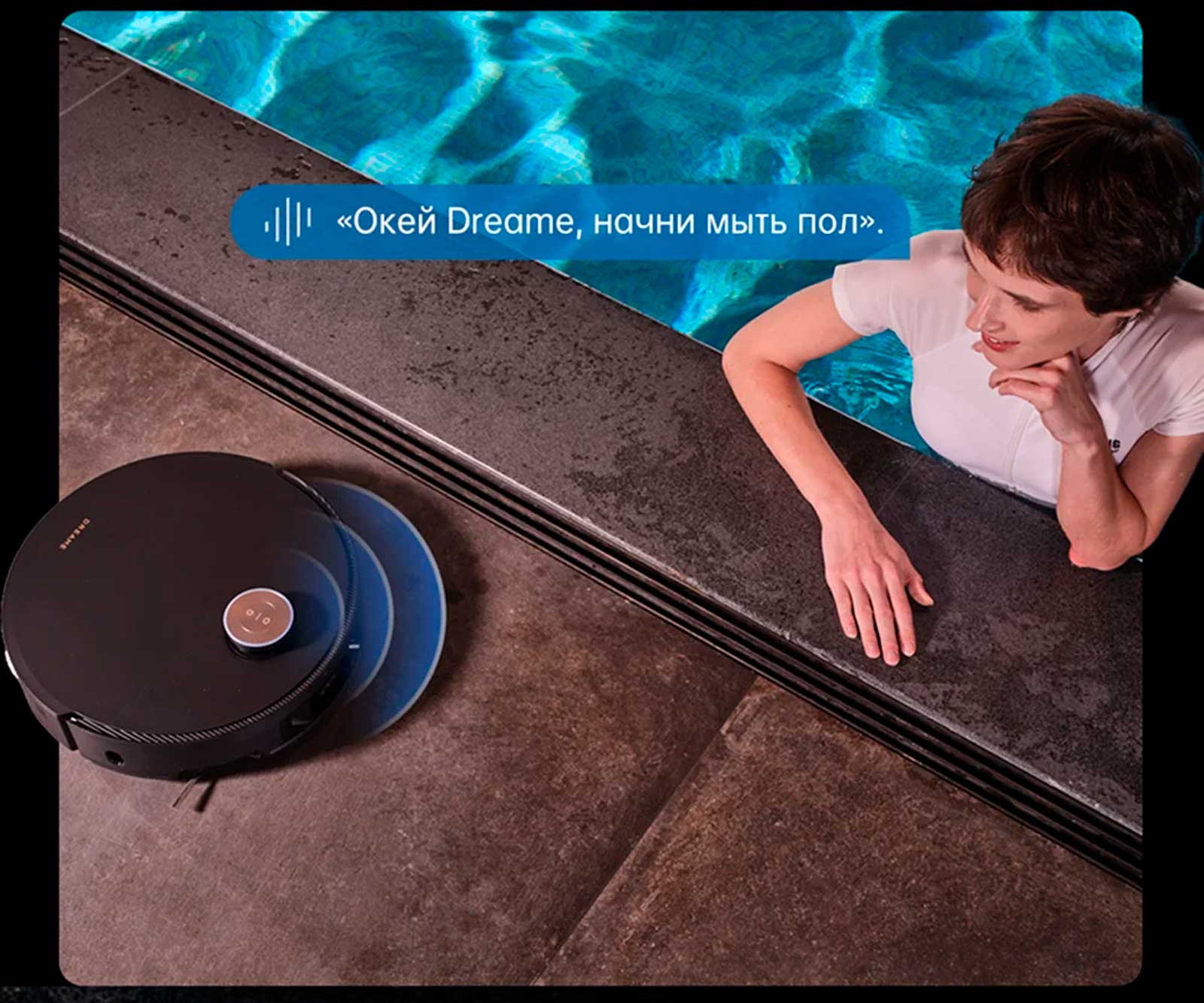 Управляйте уборкой с помощью голоса. Используйте встроенного помощника или подключите Алису, Siri или Марусю* для запуска, настройки и управления уборкой с помощью команды «Окей, Dreame»