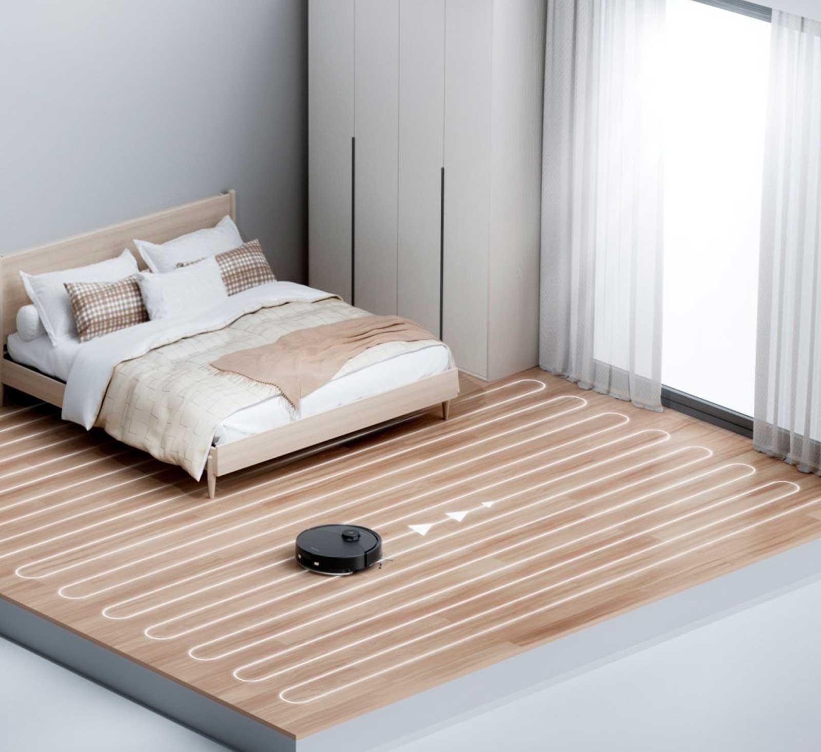 В этом режиме робот выполняет уборку по направлению укладки напольного покрытия, чтобы лучше очистить щели от пыли, шерсти и волос. Кроме того, основная щетка также работает тише, двигаясь вдоль соединений.