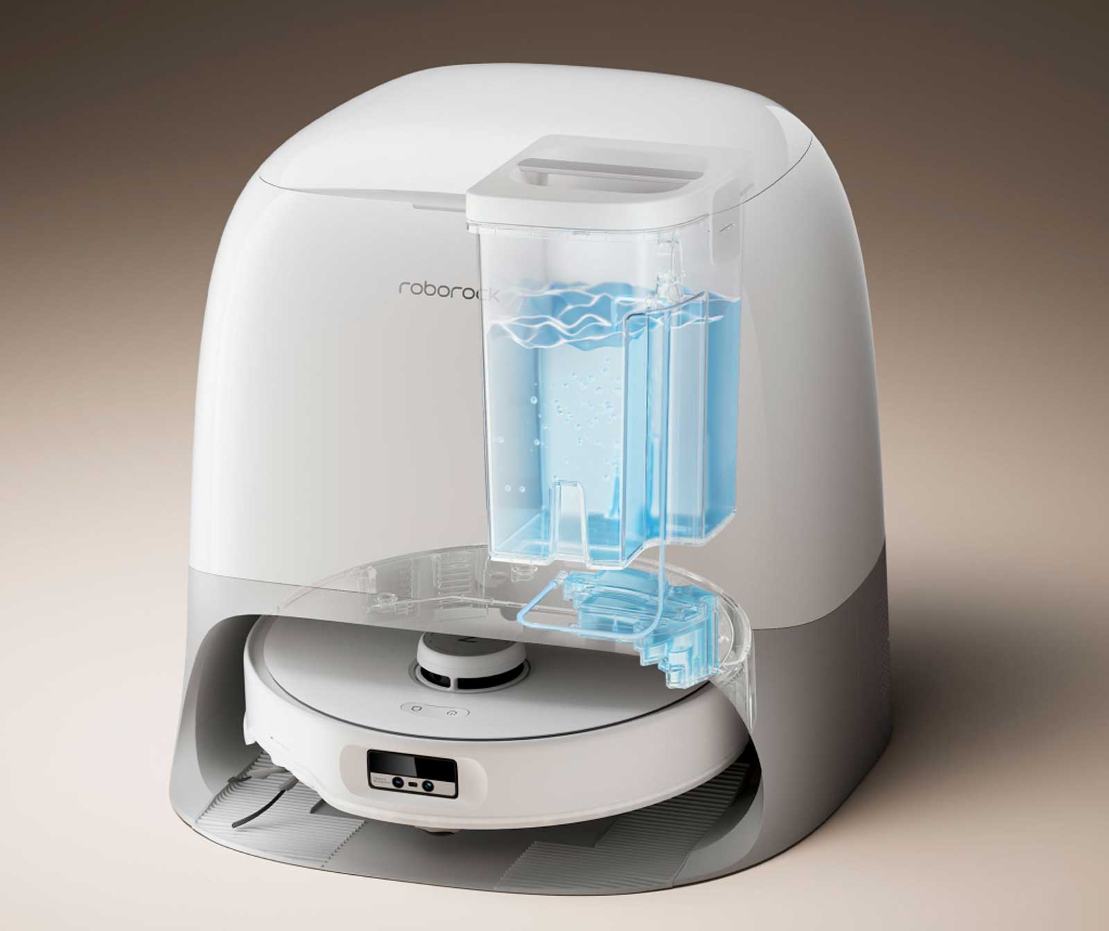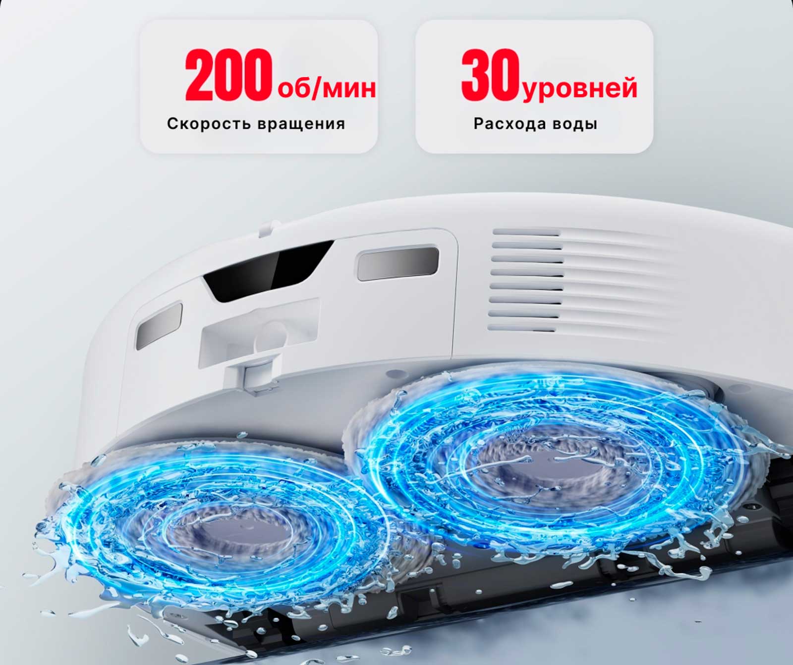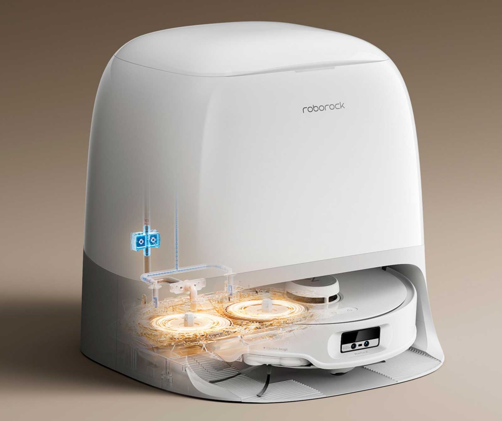 Встроенный модуль самоочистки с вращающимися скребками и горячей водой позволяет легко очищать основание док-станции, устраняя необходимость в ручном обслуживании.