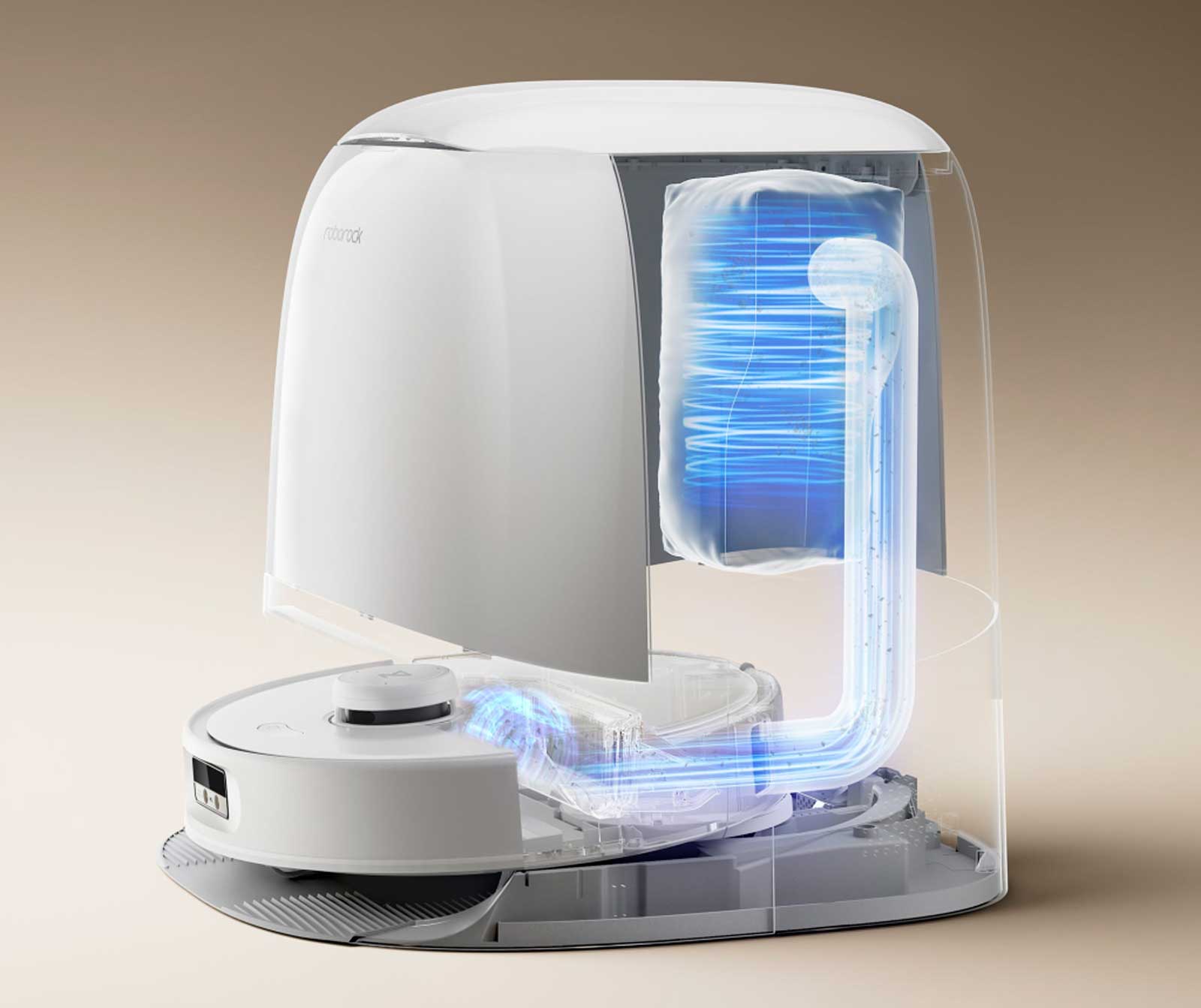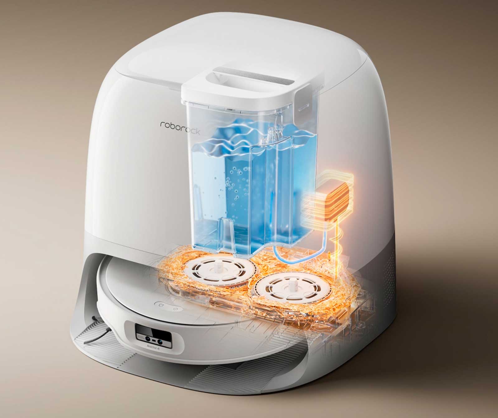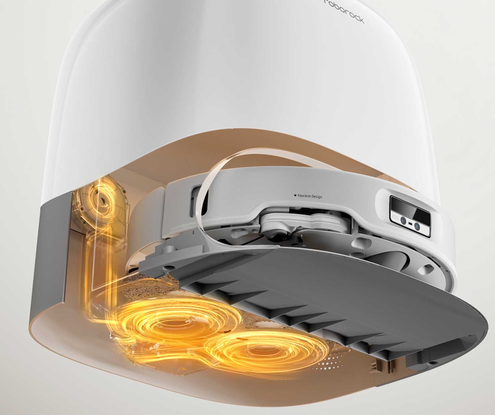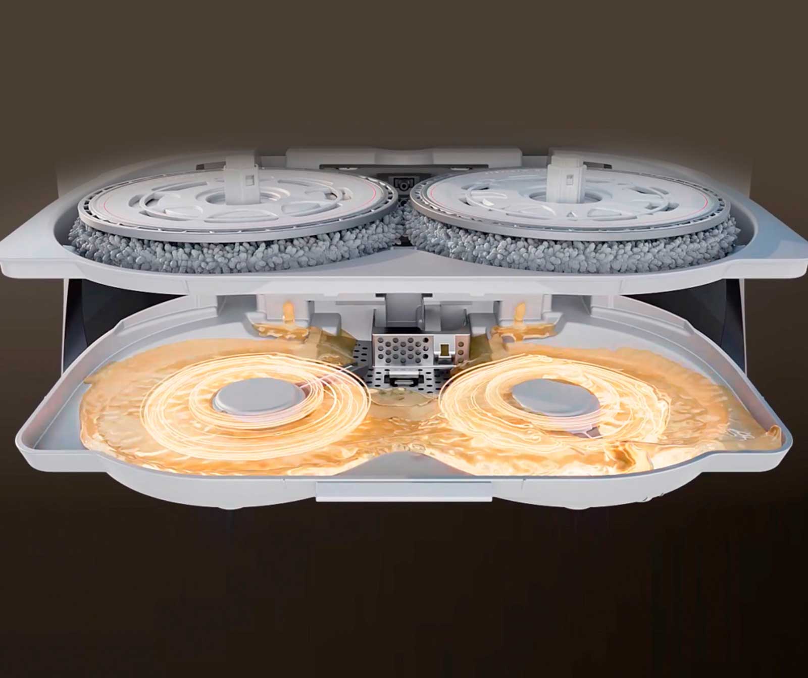Встроенный модуль самоочистки с вращающимися скребками и горячей водой позволяет легко очищать основание док-станции, устраняя необходимость в ручном обслуживании.