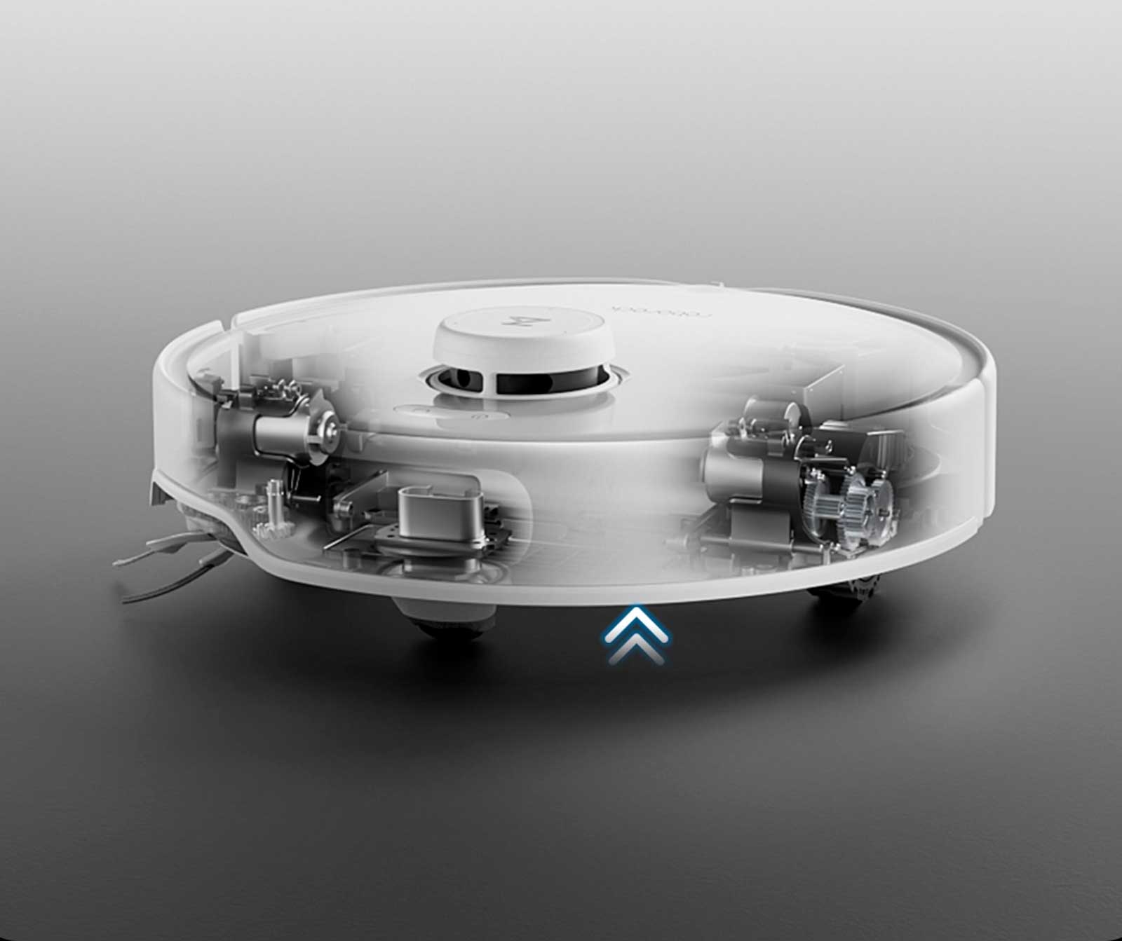 Повысьте эффективность уборки с помощью первого в отрасли шасси AdaptiLift c независимо регулируемым трехколесным управлением для различных положений подъема. Поднимите все шасси на 10мм или поднимите переднюю, заднюю, левую или правую половины, чтобы легко адаптироваться к любым условиям в доме. Шасси AdaptiLift обеспечивает оптимальное покрытие при уборке, легко преодолевая препятствия и различные типы полов.