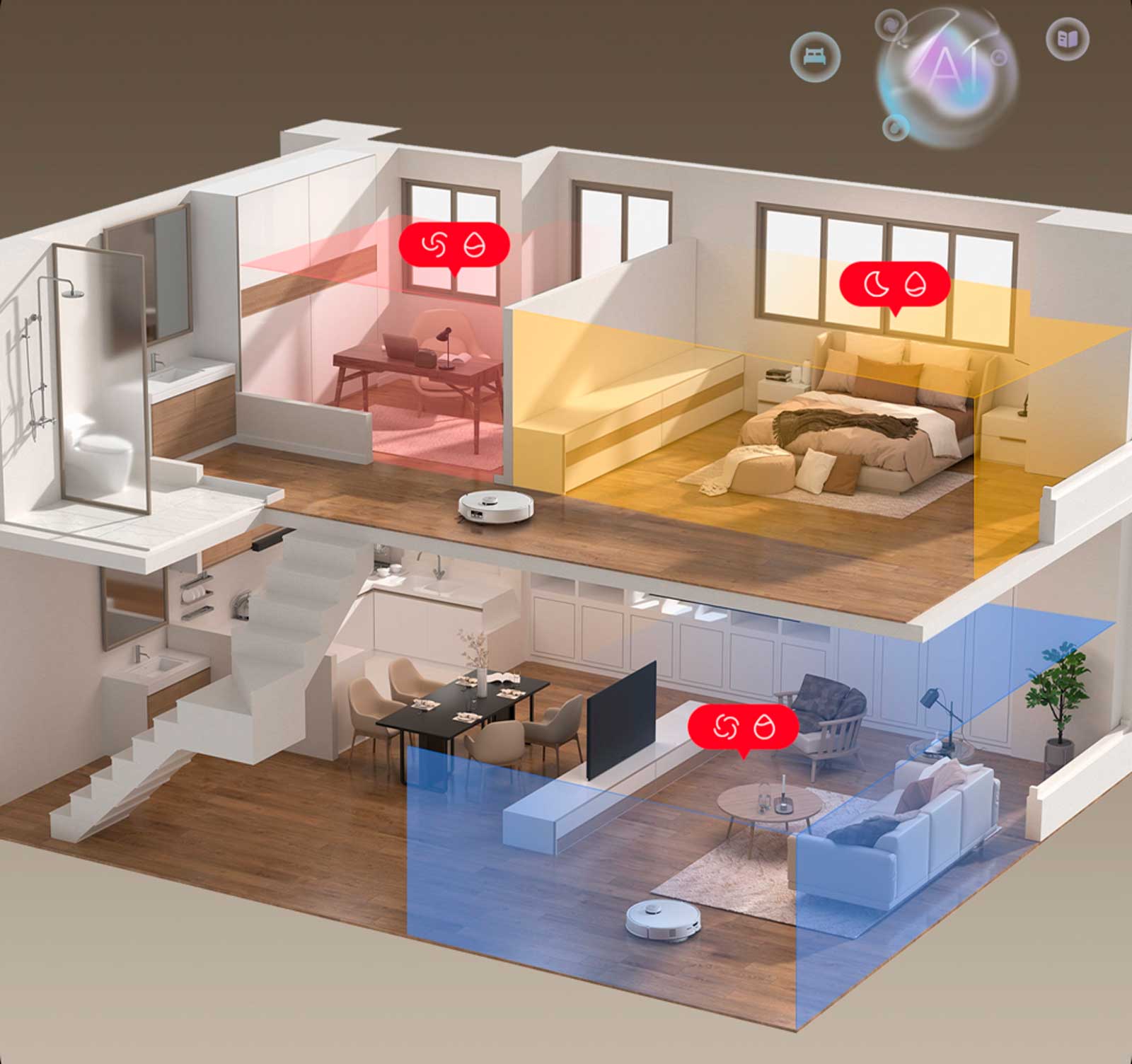 Что касается лестниц и мест, где можно легко застрять, робот может распознавать их и предлагать обозначить как «запретные зоны», чтобы вам не пришлось беспокоиться о том, что он застрянет или случайно упадёт.