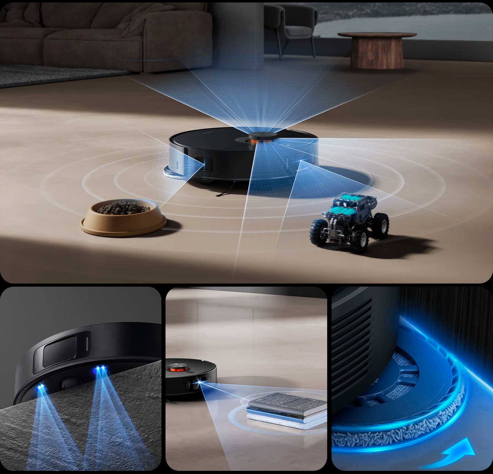 Высокоэффективная и точная уборка. Пылесос оснащен обширным структурированным освещением на 120° и датчиком края, который позволяет обнаруживать и умело объезжать низкие препятствия благодаря широкому углу восприятия. Он очищает