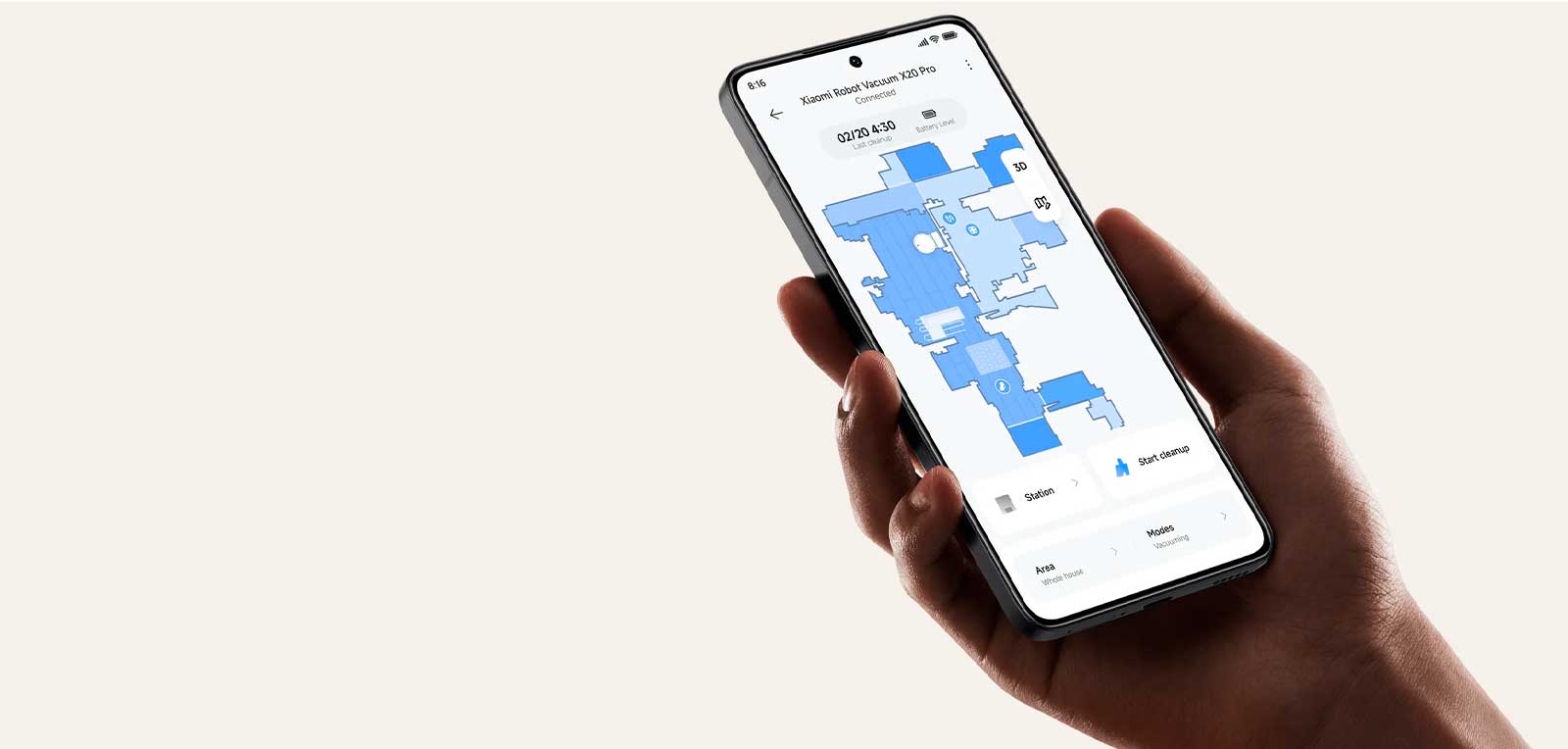 Легкая уборка, даже когда вас нет дома. Быстрым нажатием в приложении Mi Home/Xiaomi Home вы можете с легкостью запускать уборку, находясь вдали от дома. Поддерживаются настраиваемые функции, такие как уборка по расписанию и