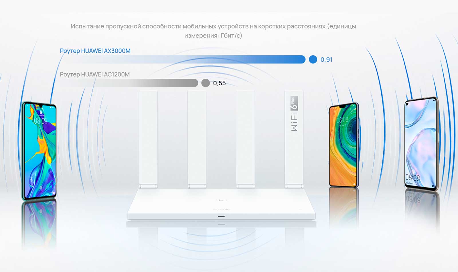 Высокая скорость соединения на устройствах HUAWEI с поддержкой Wi-Fi 6 вместе с роутером HUAWEI Wi-Fi 6 Plus