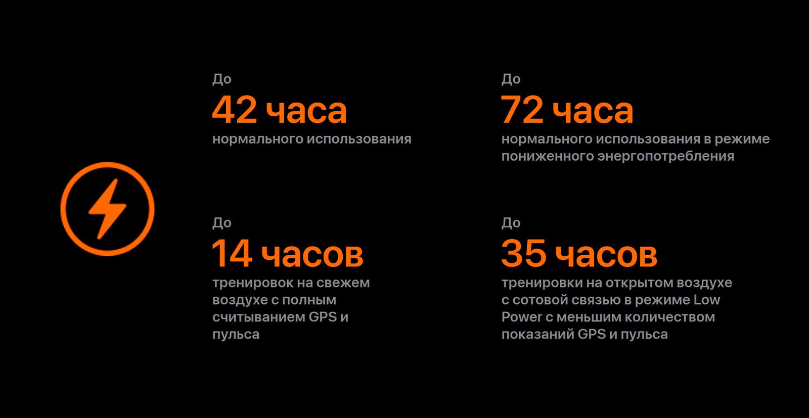 До 42 часов обычного использования / До 72 часов в режиме низкого энергопотребления