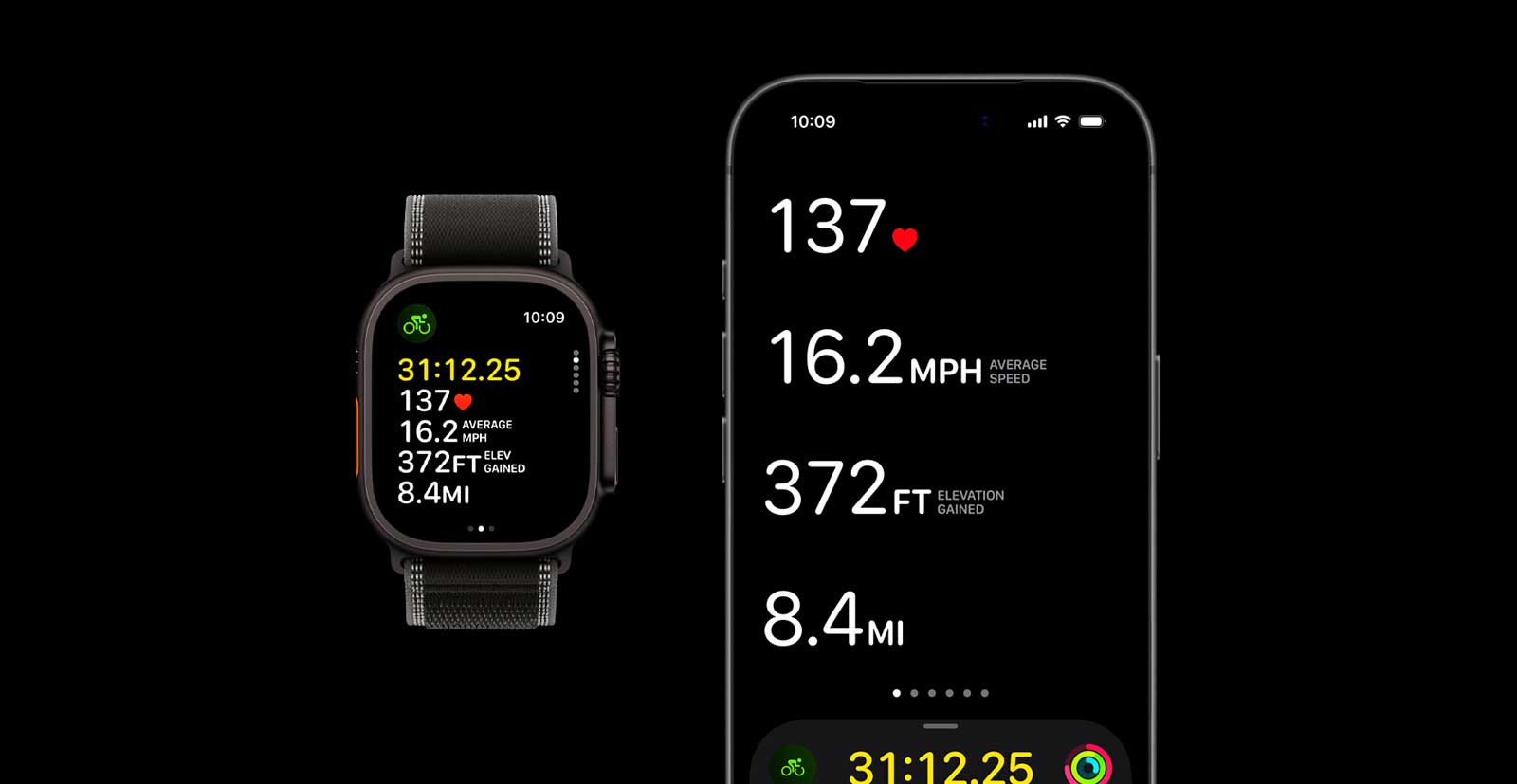Apple Watch Ultra 3 помогут вам играть в любом виде спорта. Когда вы едете на велосипеде, он активно отслеживает вашу скорость и эффективность, чтобы вы могли видеть свой прогресс в режиме реального времени. А в воде он может отслеживать ваши подходы во время плавания, автоматически определять схемы гребков и рассчитывать общее расстояние. Пришло время показать себя с лучшей стороны.