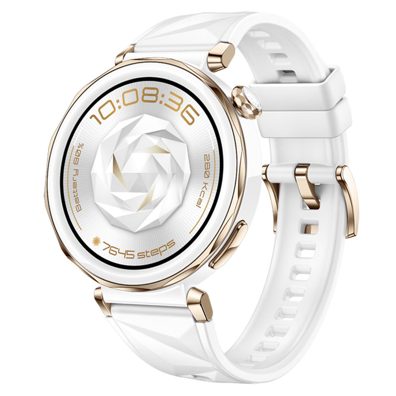 Корпус из нанокристаллической керамики и текстурированный белоснежный фторэластомеровый ремешок сочетают в себе страсть и моду. Экран из сапфирового стекла подчеркивает премиальность дизайна, искрясь и сверкая. Безель и поворотная кнопка имеют красивые золотистые акценты, придающие часам вид дорогого украшения.