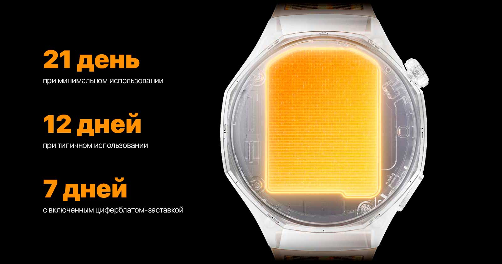 Впечатляющее время работы — до 21 дня на одном заряде. Благодаря инновационной батарее с высоким содержанием кремния плотность энергии увеличена на 37%. Всего один полный заряд дарит возможность беззаботно наслаждаться вашими