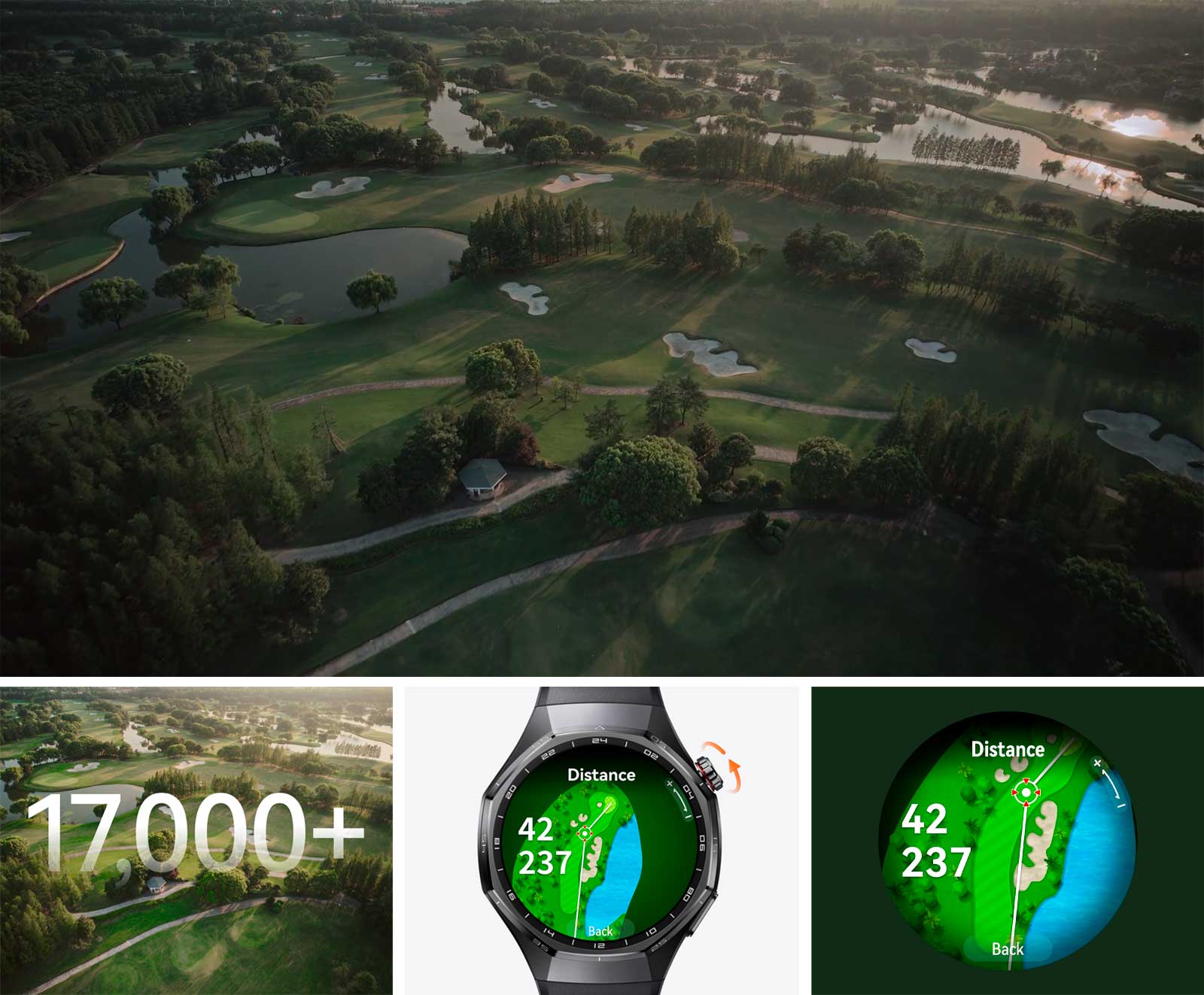 расстояния до препятствий спереди, по центру и сзади грина, чтобы корректировать стратегию игры.