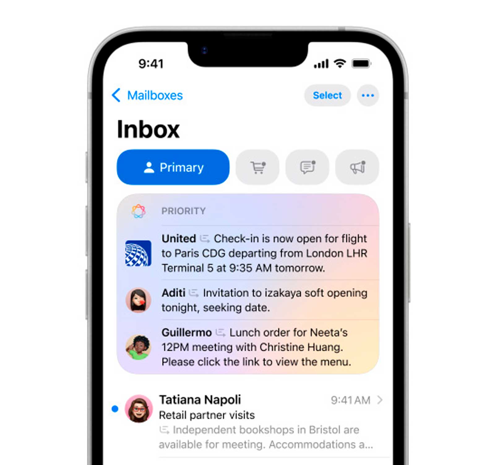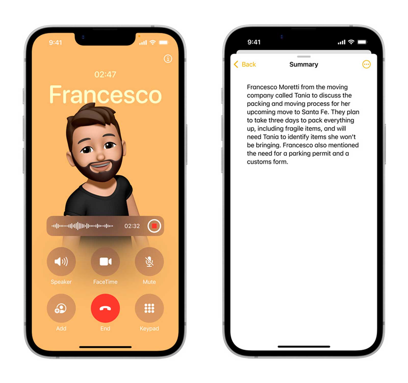 Просто нажмите «Запись» в приложении «Заметки» или «Телефон», чтобы записать аудиозаписи и расшифровки. Apple Intelligence создает сводки ваших расшифровок, чтобы вы могли быстро получить самую важную информацию.