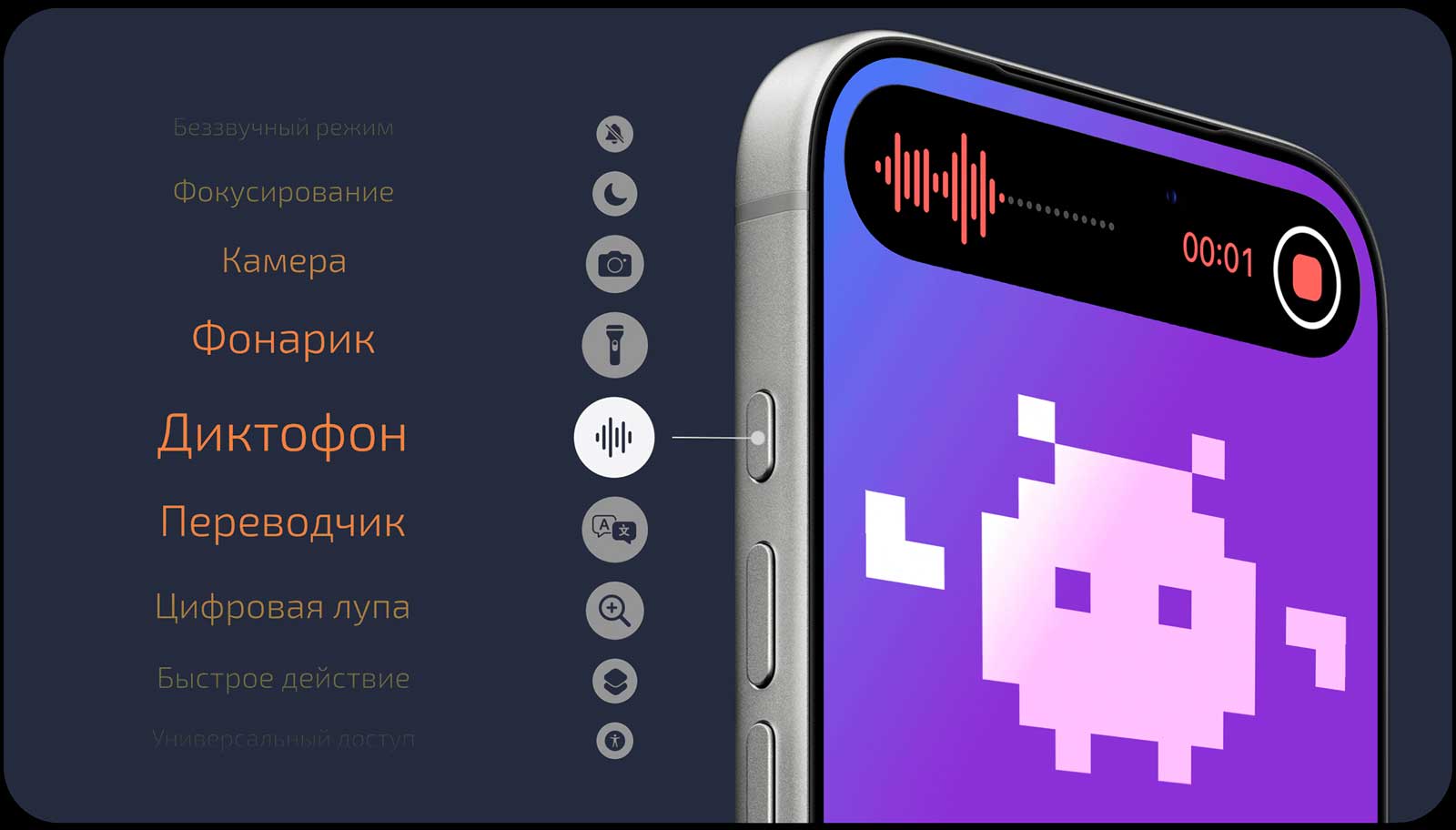 ещё одну полезную, но приятную фишку для влогеров: записывать видео теперь можно одновременно на фронтальную и основную камеру. Кстати, на кнопку Action Button можно повесить альтернативное приложение для съёмки.