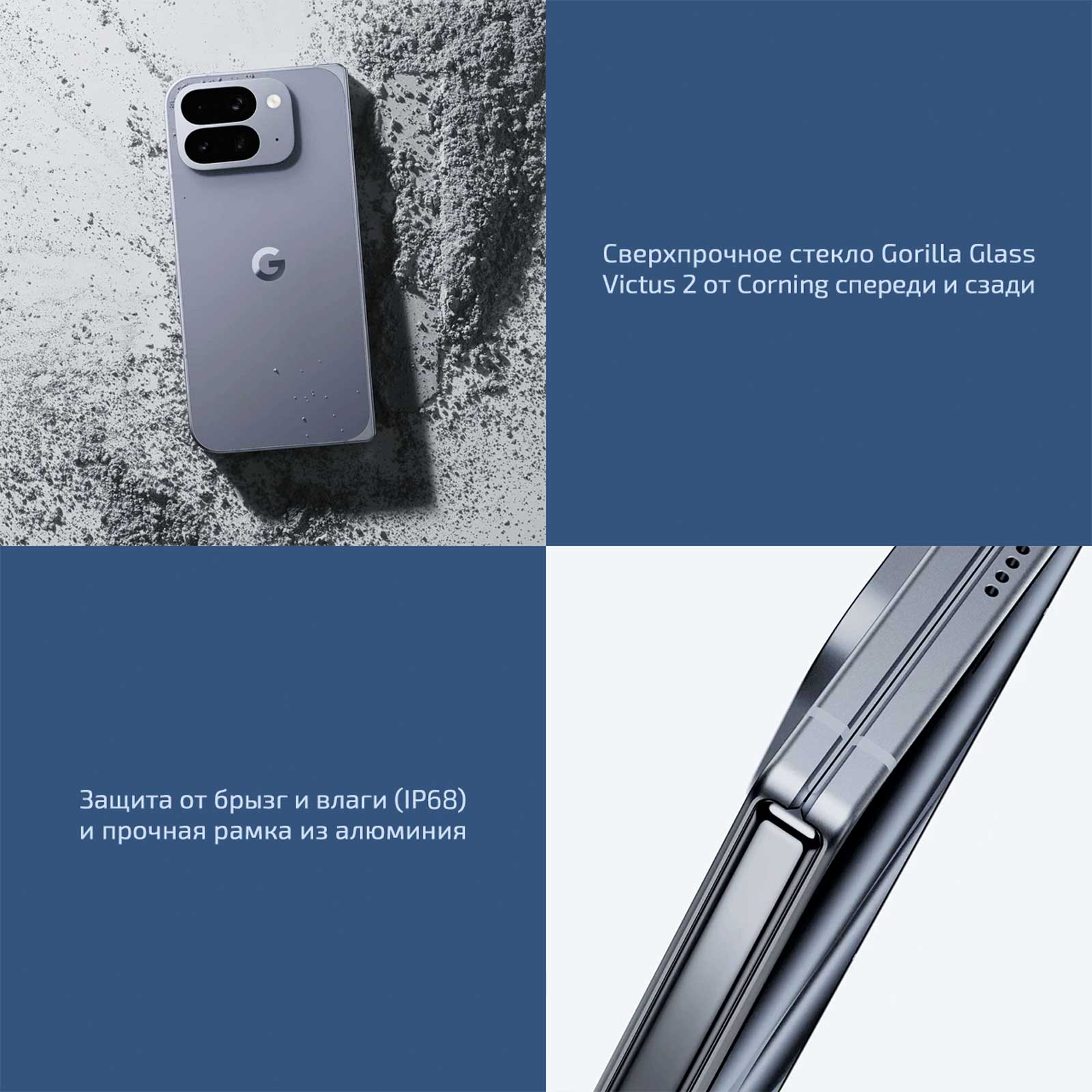 Pixel 10 Pro Fold визуально продолжает линейку флагманов Google и отличается узнаваемым расположением блока камер. Внешний экран смартфона защищён стеклом Gorilla Glass Victus 2, а задняя часть сделана из такого же стекла, но с