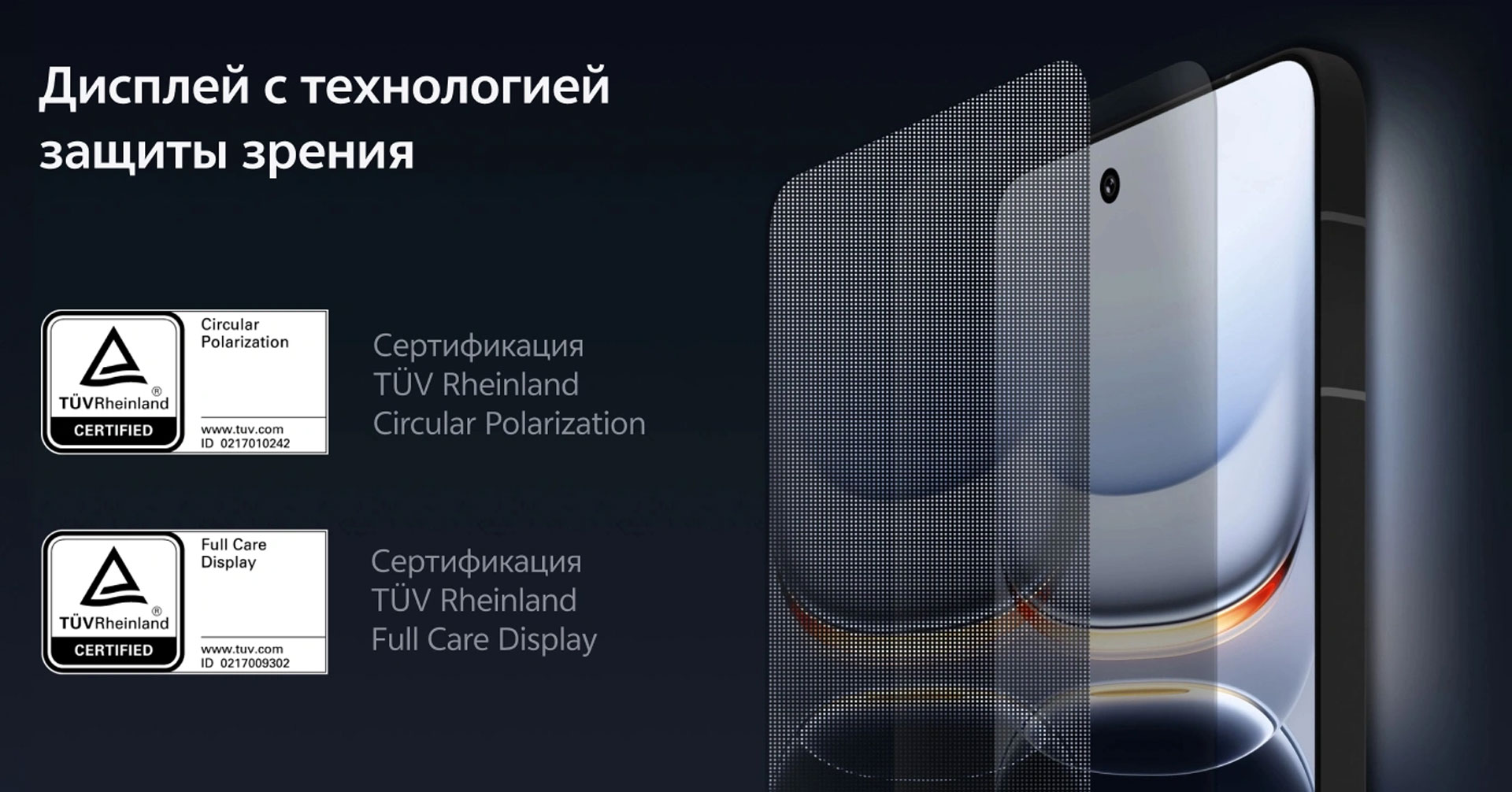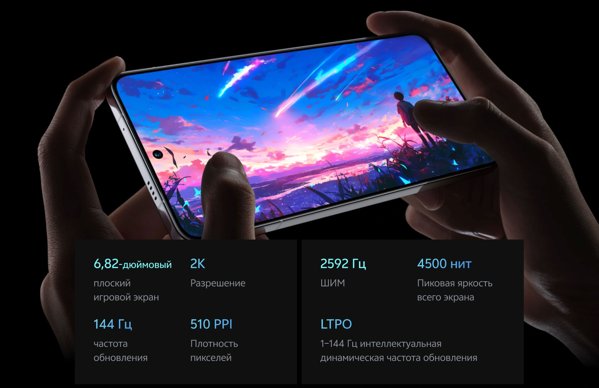 Дисплей 2K + 144 Гц использует технологию круговой поляризации, обеспечивая комплексную защиту глаз во всех сценариях. Абсолютно новые светоизлучающие материалы Q10 гарантируют четкое и точное отображение деталей, а также сверхнизкое энергопотребление.
