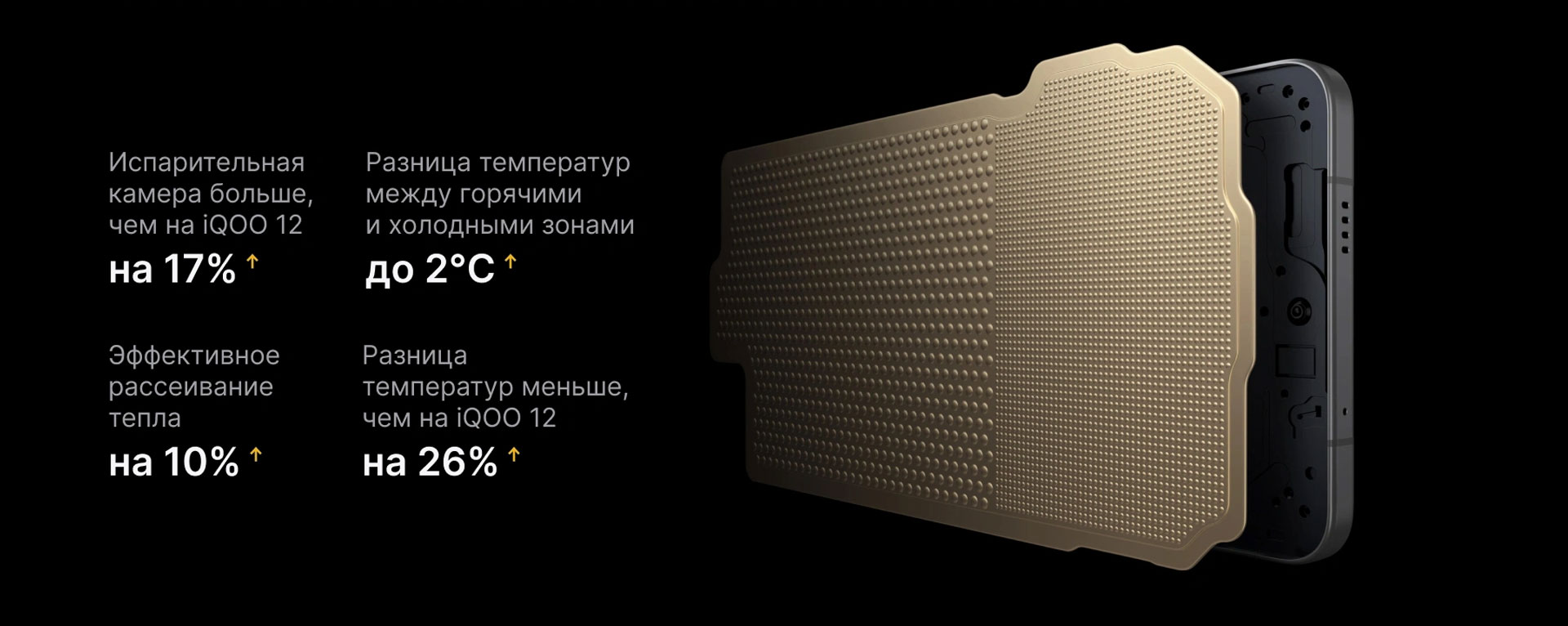 Испарительная камера площадью 7000 мм² обеспечивает эффективное и равномерное охлаждение, выполняя функцию центрального кондиционера для системы охлаждения мобильного телефона.