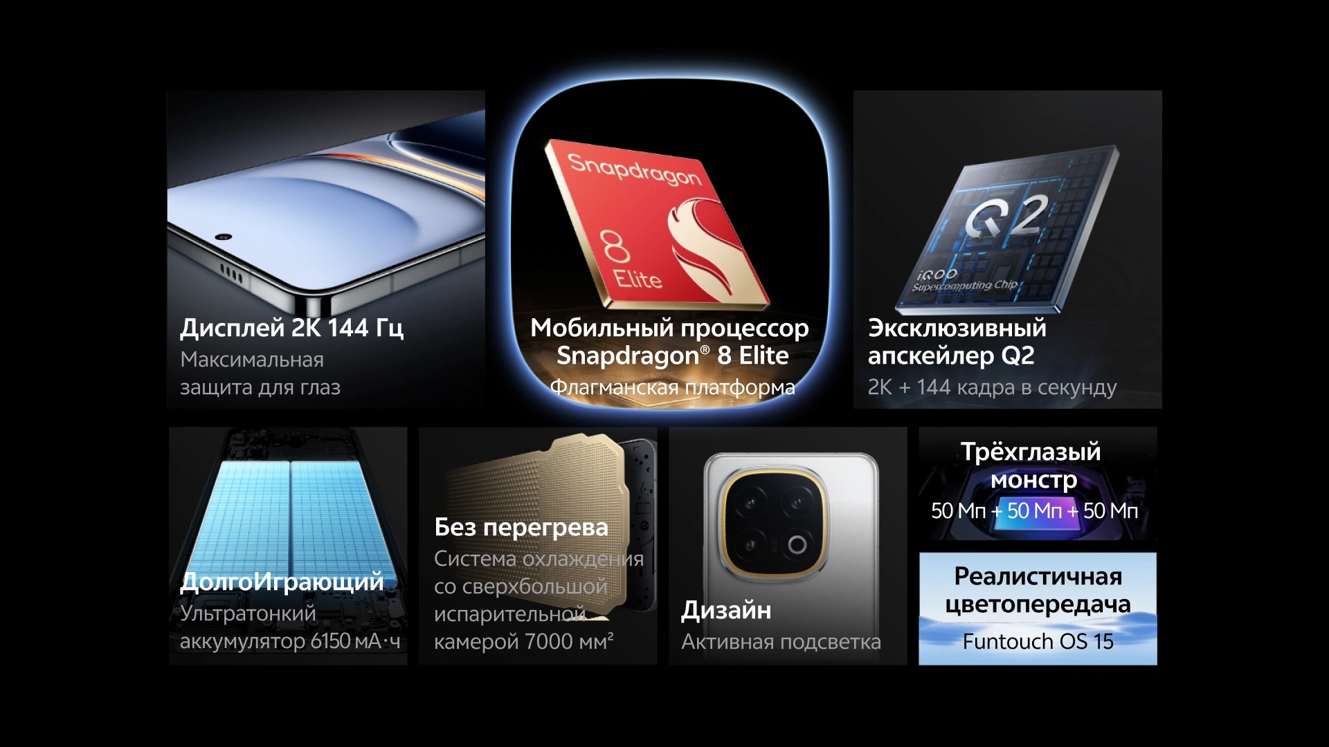 iQOO 13, разработанный совместно vivo и Qualcomm, работает плавно и эффективно в различных сложных сценариях со сверхнизким энергопотреблением. Игровая графика исключительна благодаря совместной настройке эксклюзивного игрового контента и интеграции экосистемы, поддерживаемой чипом Q2. Performance Iron Trio обеспечивает длительную и плавную работу пользователя благодаря расширенному объему памяти, более высокой скорости и многим другим преимуществам.