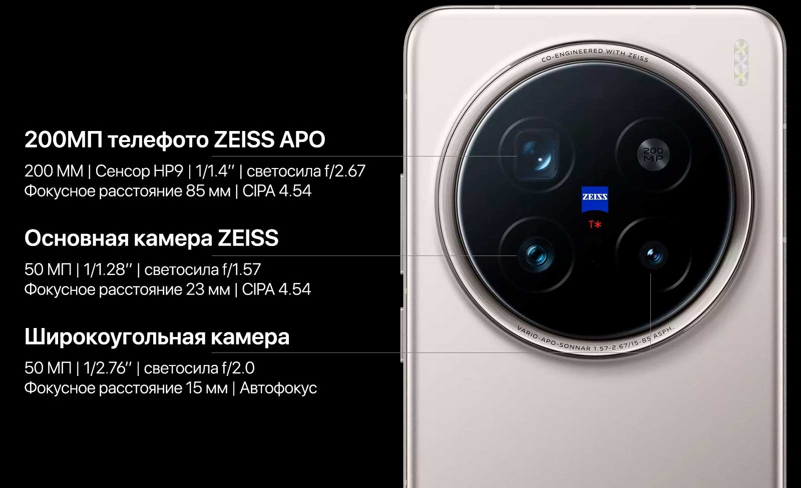 Фиксируйте удаленные детали с потрясающей точностью! Камера с сенсором диагональю 1/1,4 дюйма и плавающим перископом оживляет объекты, находящиеся на значительном расстоянии. Благодаря технологии цветокоррекции ZEISS APO, снимки остаются четкими и реалистичными даже при многократном увеличении.