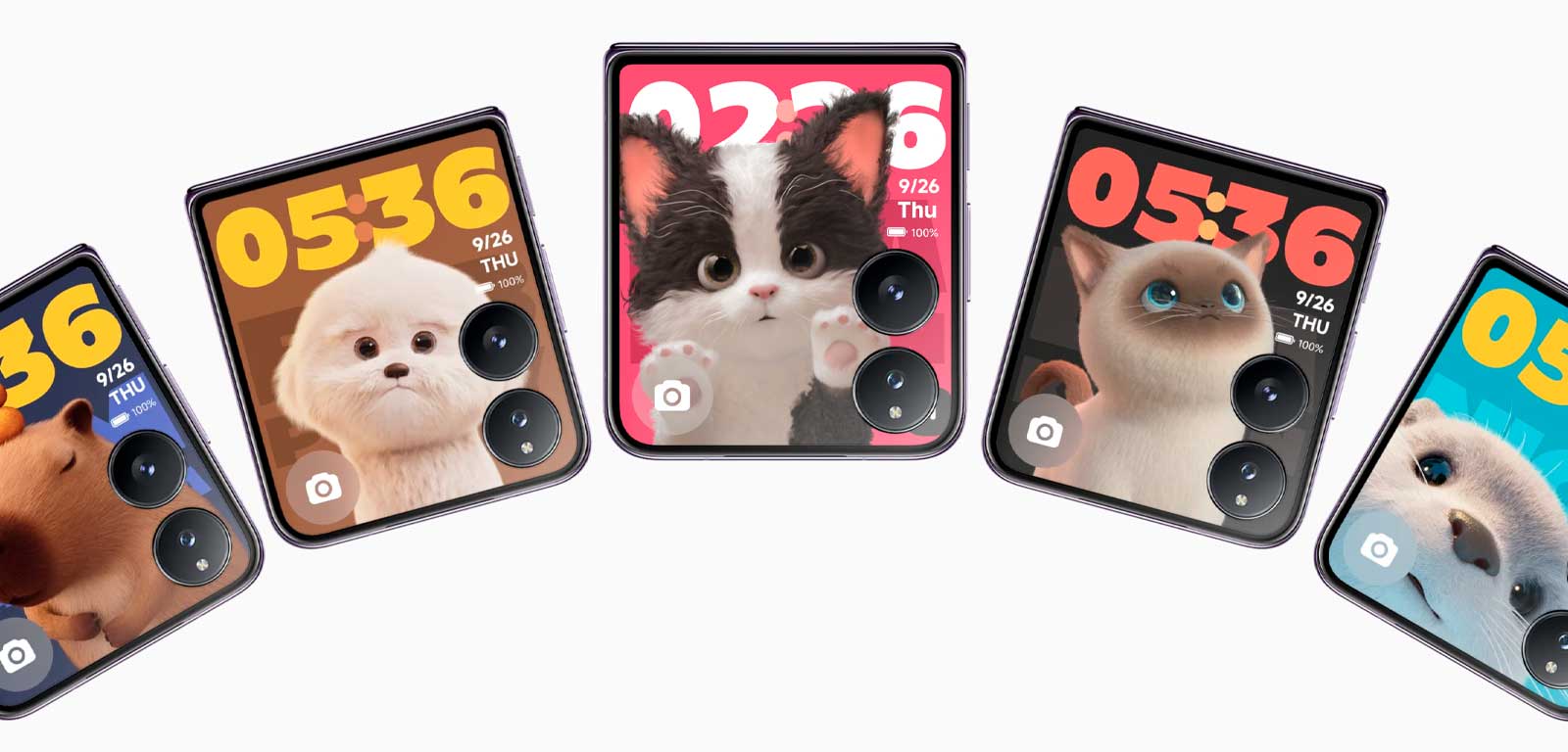 Забавные темы для демонстрации вашей креативности. Для вас доступны динамические экраны блокировки с забавными домашними животными. Вы также можете превратить внешний дисплей в свой холст и нарисовать собственные обои.