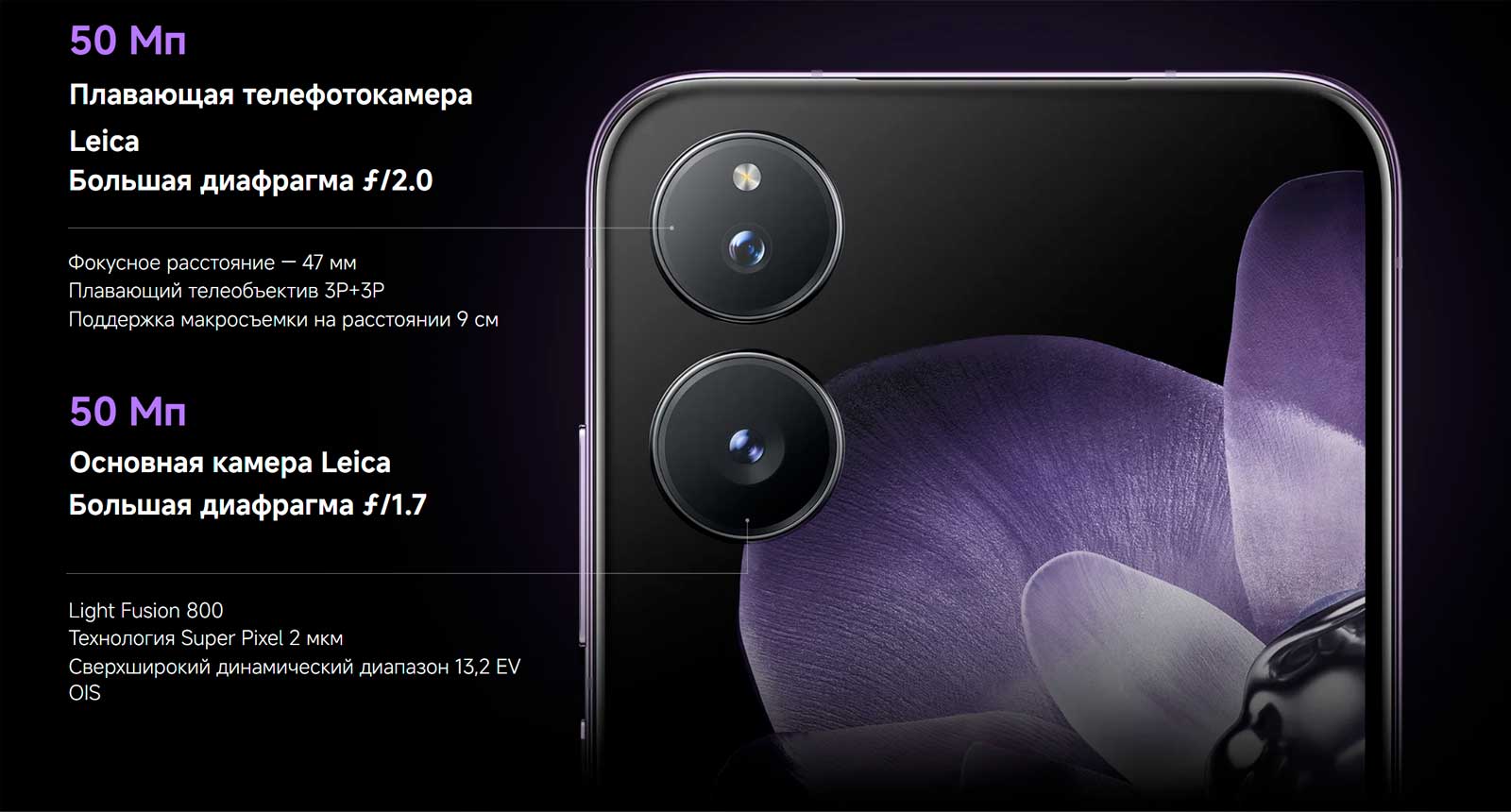 бесконечности, что впечатляет как при создании снимков крупным планом, так и при съемке на большом расстоянии. Благодаря телемакросъемке пользователи могут снимать крупные планы с потрясающей детализацией.