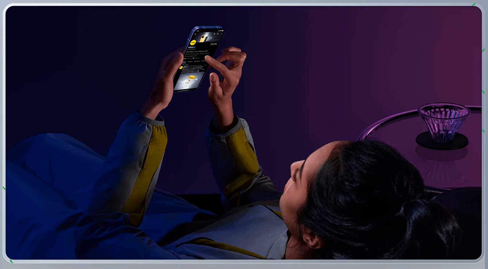 Используя мощную комбинацию технологий TDDI, EMux и FIAA, POCO F7 имеет ультратонкую нижнюю рамку толщиной 1,9 мм. Наслаждайтесь захватывающими визуальными эффектами, как только вы включите дисплей.