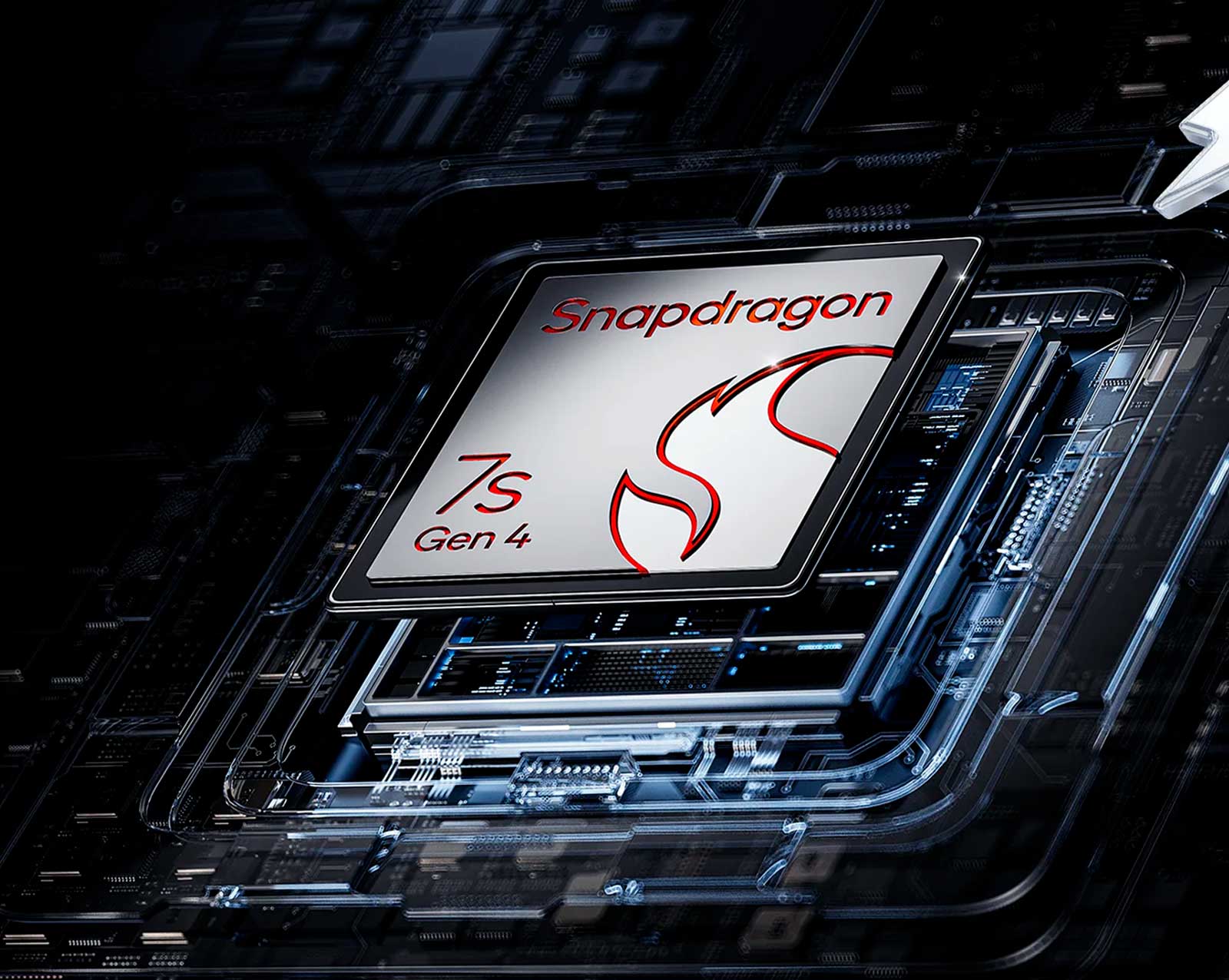 Передовой 4-нм процессор. Snapdragon® 7s Gen 4 обладает мощной восьмиядерной архитектурой, обеспечивающей более высокую производительность и плавную многозадачность. Наслаждайтесь повышенной эффективностью и длительным временем