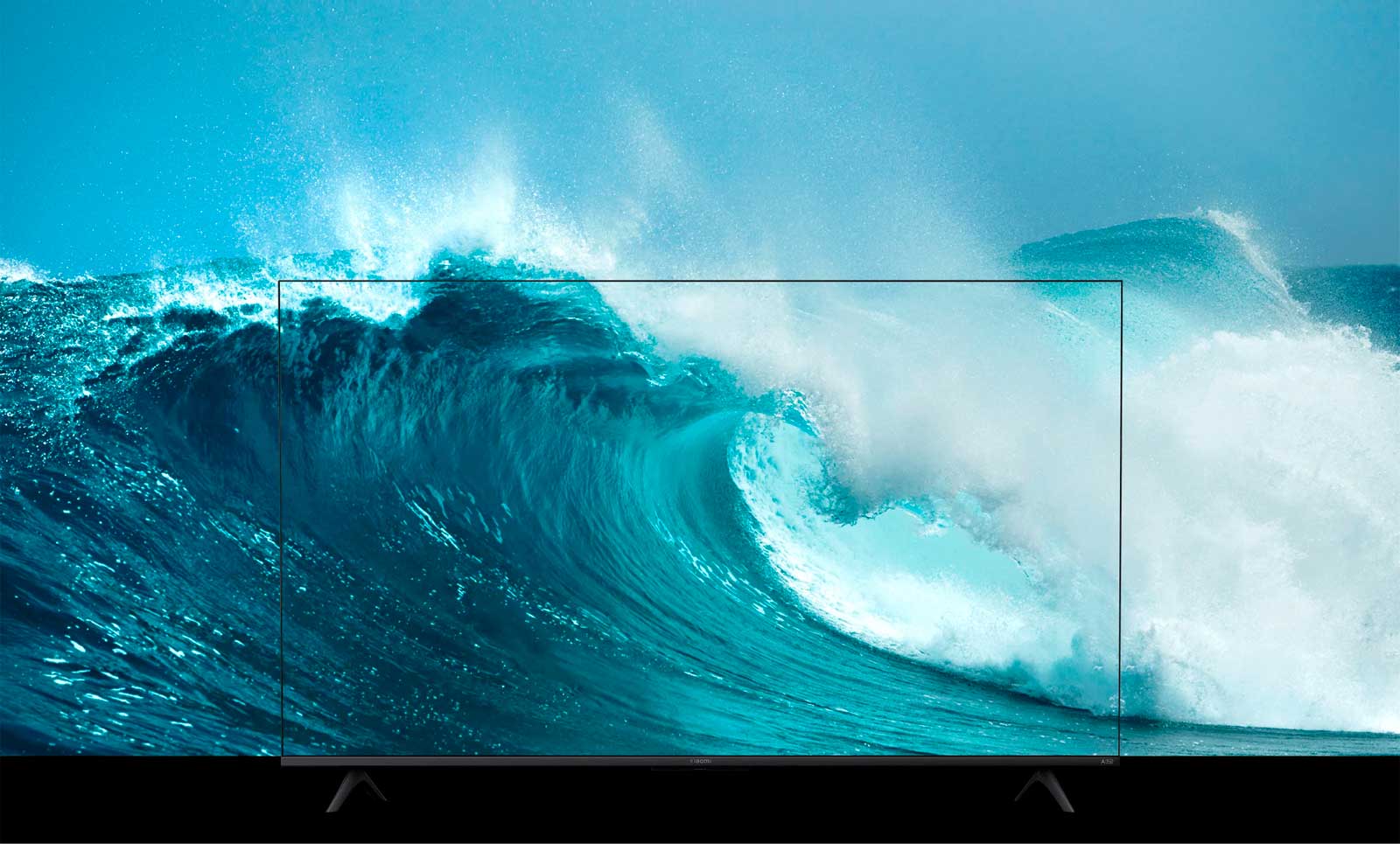 Эффект погружения при просмотре. Конструкция с ультратонкой рамкой обеспечивает высокое соотношение размера экрана и корпуса, значительно превосходящее соотношение стандартных телевизоров. Когда экран включен, практически невозможно