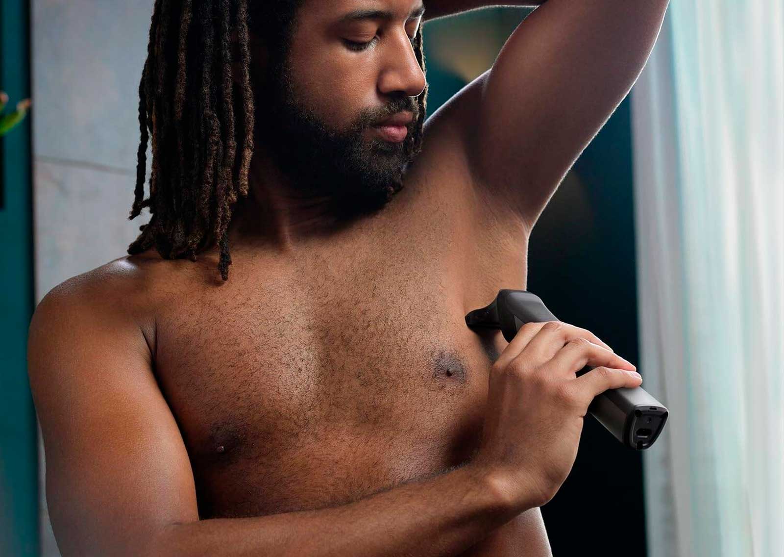Комфортное бритье ниже шеи с помощью нашей насадки для бритья тела. Уникальная система защиты кожи защищает чувствительные участки, пока вы бреете до 0,5 мм. Вы также можете подстригать волосы на теле с помощью насадки-гребня.