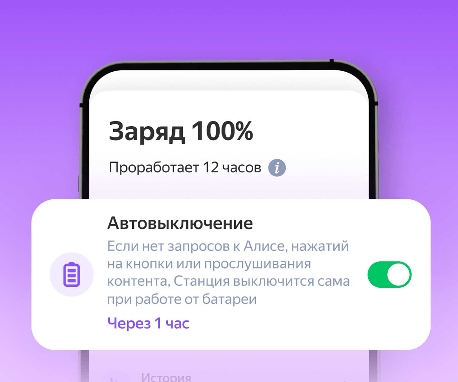 В приложении можно настроить автовыключение колонки: она будет выключаться, когда вы не взаимодействуете заданное время