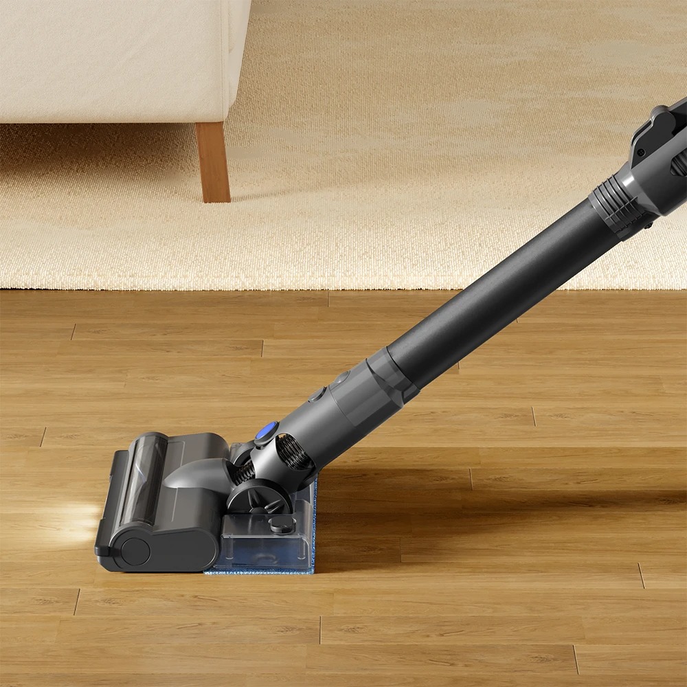 Пылесос J30 предлагает интегрированные функции сухой уборки и мытья полов, реализованные за счет объединения резервуара для воды со шваброй. Пылесос эффективно справляется с пылью и сухими частицами на полу, при этом пользователь может вручную подавать воду из резервуара для смачивания швабры. Такая система позволяет эффективно очищать твердые напольные покрытия, тщательно удаляя стойкие пятна и загрязнения.