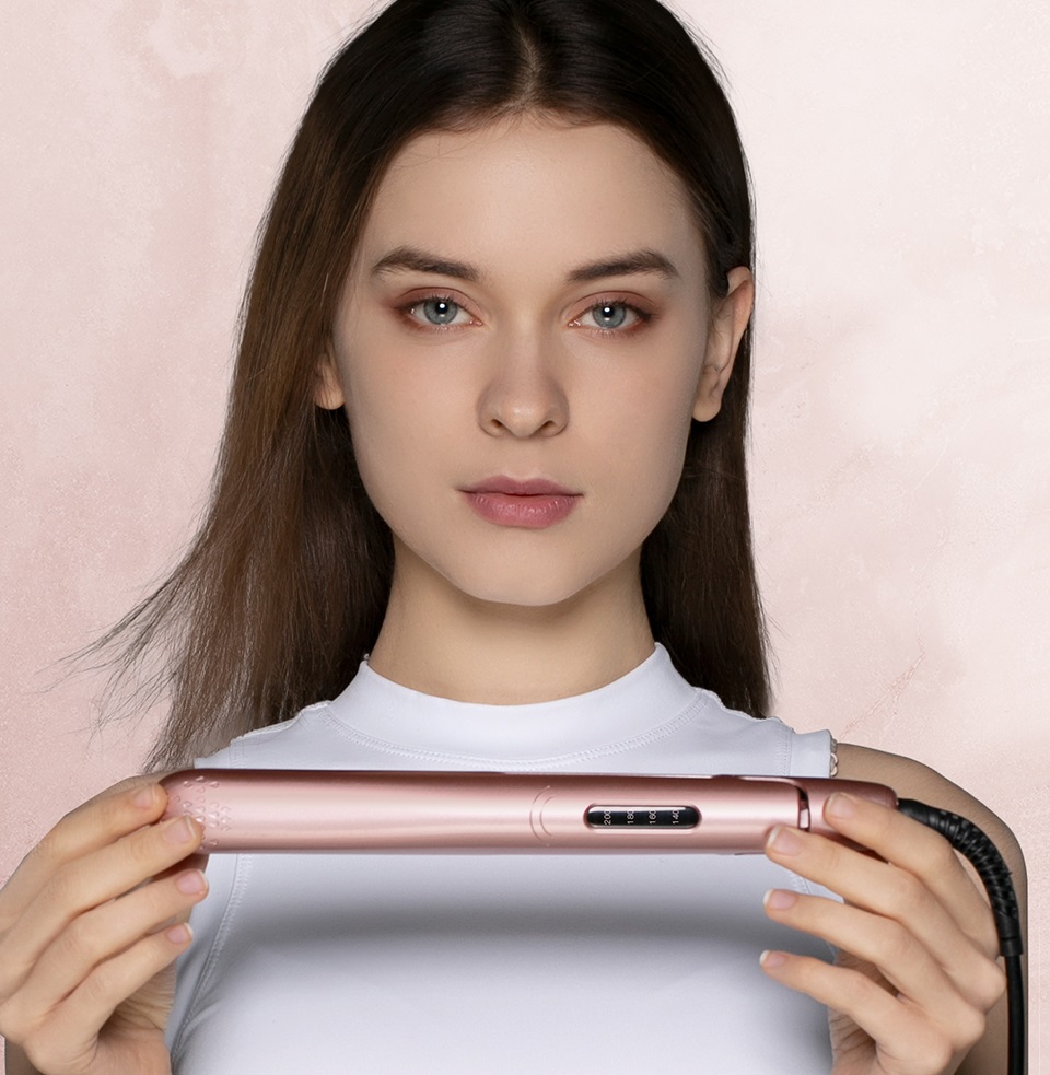 Керамические пластины устройства равномерно распределяют тепло вдоль всей рабочей поверхности и защищают волосы от перегрева. Диапазон регулировки температуры нагрева составляет 140-200 °C, а на интегрированном в корпус дисплее вы сможете видеть выбранный температурный режим.