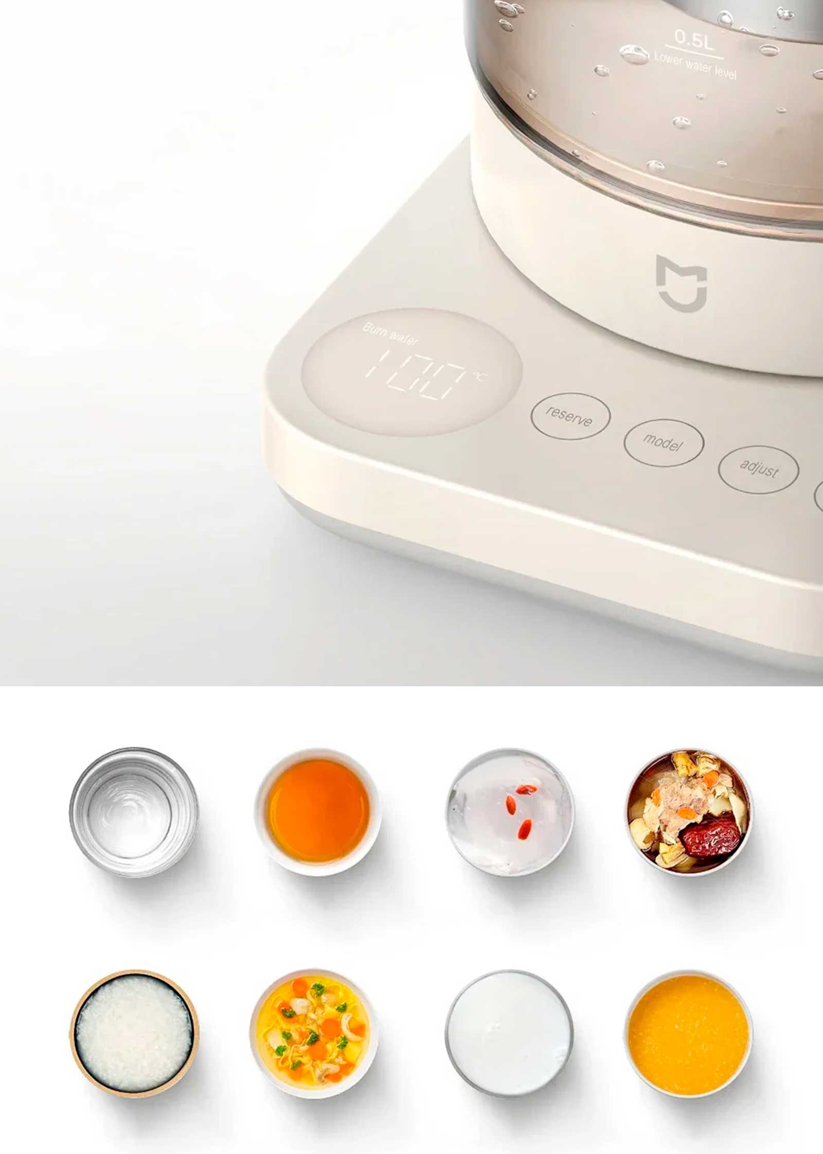 Горшок Xiaomi Mijia S2 позволяет готовить блюда как напрямую, так и с использованием чаши для тушения или ситечка для чая. Это открывает три способа приготовления: десерты, отвары, супы, питательные рагу, чайные напитки и блюда